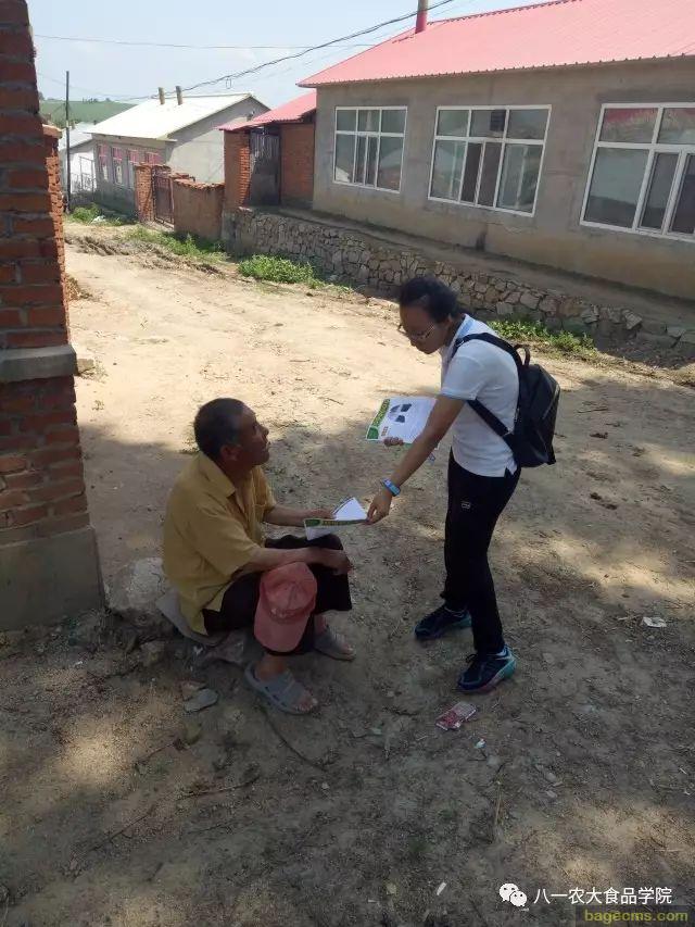 为了响“喜迎十九大,青春建新功”的号召,在校团委以及老师的与鼓励下,2016级食品质量与安全(1)班组织了一个9人的老员工志愿行动小组。在当地政府的支持下来到了黑龙江省牡丹江市阳明区五林镇姚亮村村进行了走访调查。以发宣传单,和村民聊天沟通的形式对农民进行环保知识的宣传。