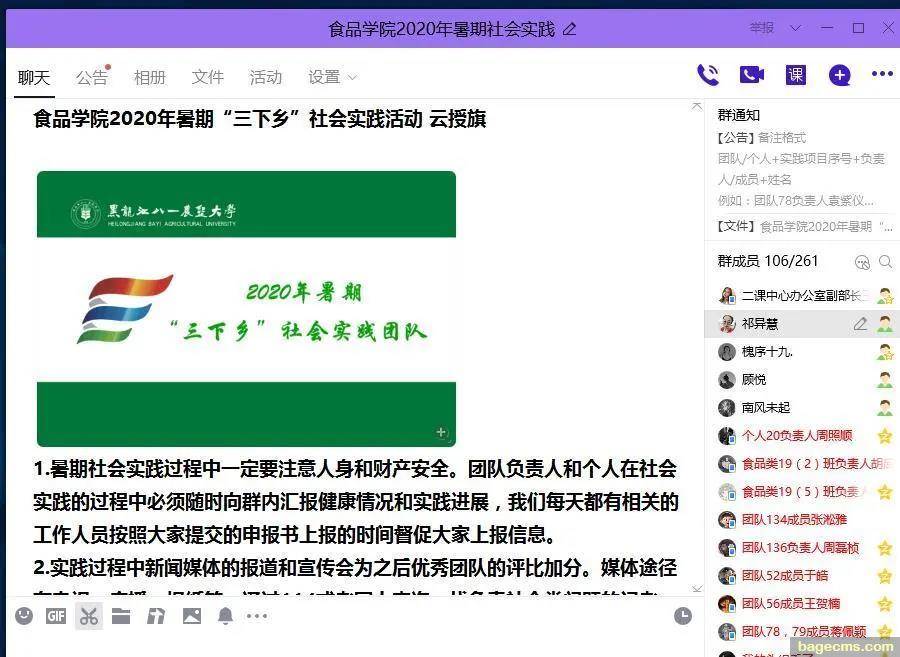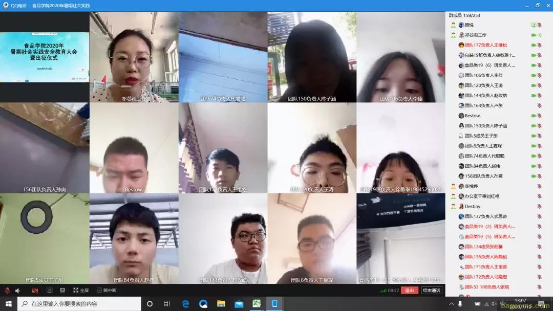 为深入学习贯彻习近平新时代中国特色社会主义思想和党的十九大,引领广大青年员工在社会实践活动中积极参与新时代“三农”工作,U8国际按照校团委2020年暑期社会实践工作部署及要求,制定《2020年暑期“三下乡”社会实践活动实施方案》,并在7月12日下午1:00,以“员工代表参会+云端见面”的形式,举行了2020年U8国际暑期社会实践安全教育大会暨出征仪式。会议由公司团委书记祁异慧主持,公司27个班级团支书及社会实践团队代表参加了本次大会。