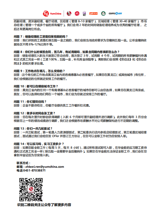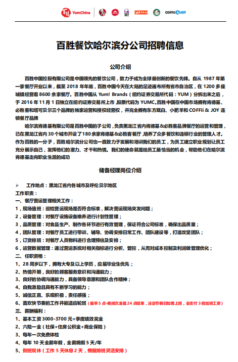 校园招聘|百胜餐饮哈尔滨分公司精英计划成员招募