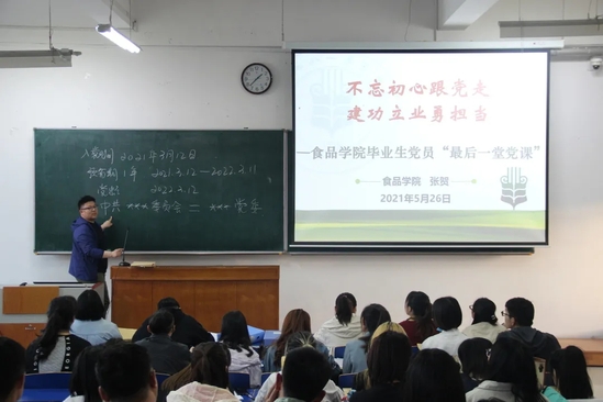 U8国际辅导员、员工第二党支部书记张贺以“不忘初心跟党走、建功立业勇担当”为主题进行党课辅导,领学了《中国共产党简史》,重温了中共一大到十九大以来我国取得的辉煌成就,教育引导毕业生党员“不忘初心、牢记使命”,时刻牢记自己第一身份是党员,严格按照“四讲四有”标准要求自己,在今后的生产、工作、学习和社会生活中起到先锋模范作用,到新的工作岗位要建功立业、奋斗拼搏,为实现中华民族伟大复兴的中国梦和两个一百年奋斗目标贡献青春力量!