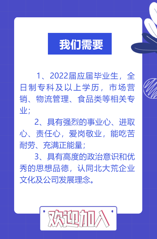 就业信息 | 北大荒食品集团有限公司2022届“食习生”招聘正式启动