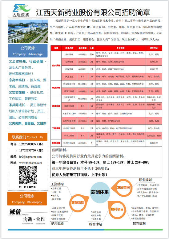 江西天新药业股份有限公司招聘简章