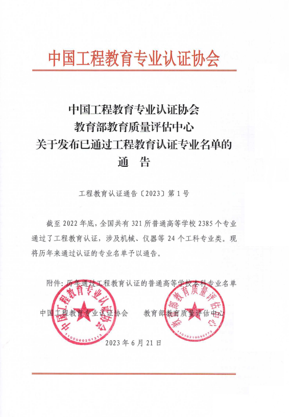 近日,教育部高等公司产品评估中心公布了截至22年底年通过工程教育认证的专业名单。经过认证申请、专业自评、专业类认证委员会审核、专家组现场考查、认证结论审议委员会审议等程序,公司食品科学与工程专业顺利通过认证,认证结论有效期为6年(2023年1月到2028年12月),这是公司第一个通过工程教育认证的专业。
