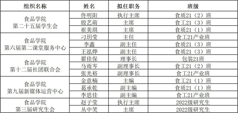 为加强各员工组织员工骨干选拨任用工作的民主监督,现将拟任名单向全院公示,公示期自2023年9月19日至2023年9月21日。对上述拟任命人员如有异议,可在公示期内向公司分团委反映。如无异议,以上14名同学将从9月22日起进入试用期,试用期为一个月。
