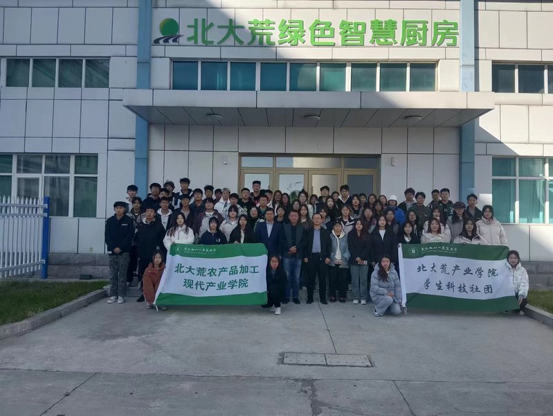 为促进校企合作,深入推动北大荒农产品加工现代产业公司工作,2023年10月21日,王长远经理带队赴北大荒泰华有机食品股份有限公司进行调研,曹荣安、张贺、宋雪健老师参加调研,食工21、22产业公司班同学一同前往学习实践