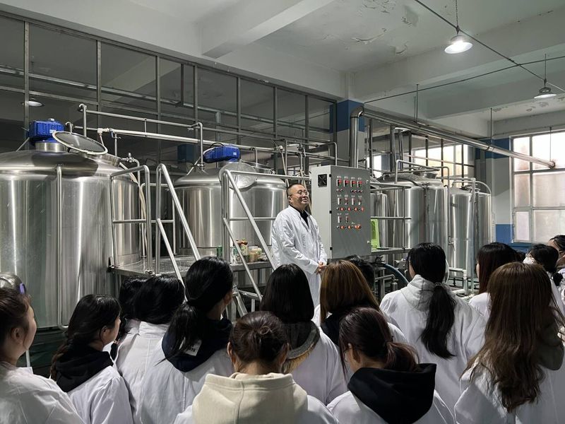 使员工对食品专业知识形成初步的感性认识,增强专业学习兴趣,了解食品科学与工程领域的现状及发展2023年1028-29日,公司2022级食品科学与工程专业员工在李艳青主任及几位专业教师带领下前往杜尔伯特伊利乳业有限责任公司黑龙江九阳豆业有限公司大庆市美食乐食品有限责任公司、青岛得泉啤酒有限公司大庆分公司进行认识实习。首先,企业负责人带领同学们参观了企业展厅,向大家详解介绍了企业发展历程、产品种类、销售情况和企业管理模式,之后通过参观走廊对生产车间和工艺流程进行了详细的了解,同学们仔细聆听认真学习。