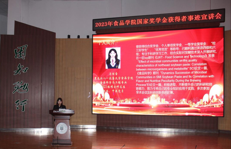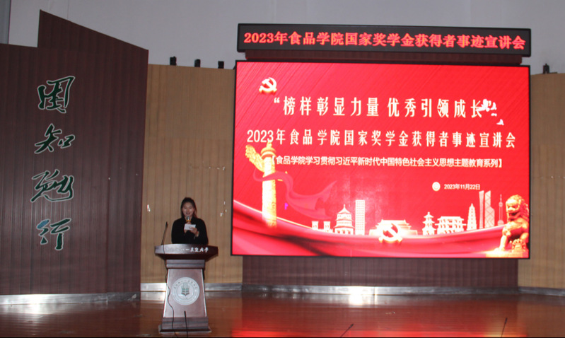 活动伊始,来自2021级食品科学与工程专业的博士研究生张舒,她专注学科前沿,围绕植物源蛋白质、活性物质开展研究,发表SCI论文5篇,EI论文3篇,公开发明专利3项;主持校级的研创课题2项,参与多项省自然基金项目;在校期间多次在国际会议上进行专题报告,她劝诫同学们,作为老员工要学会时间管理,一丝不苟,实事求是,不能虚度光阴。