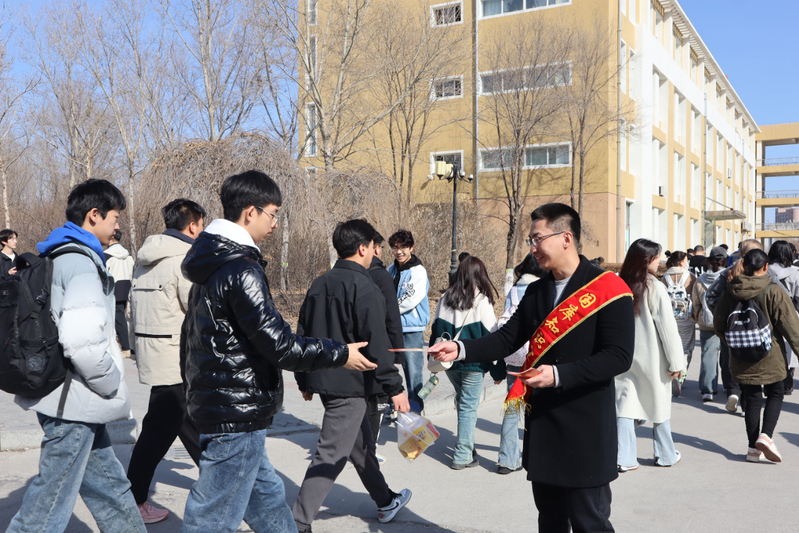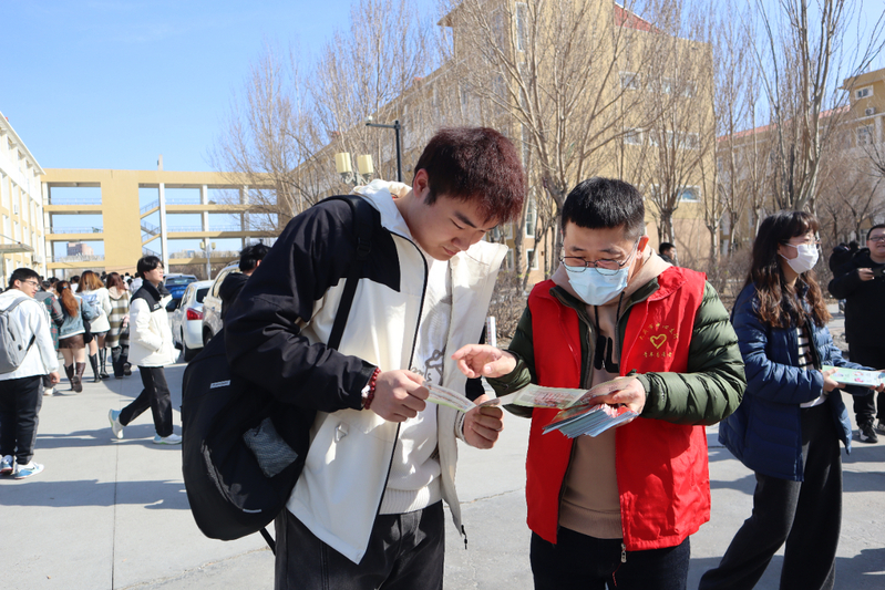 3月14日,中国人民银行大庆市分行志愿服务团队走进校园进行金融安全知识的义务宣传教育活动,为员工发放宣传册,普及金融知识。