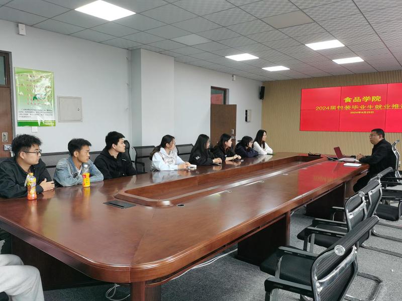 为帮助2024届毕业生树立正确的就业观念,提高包装专业员工的就业质量,4月25日下午,2024届包装毕业生就业推进会在U8国际3055举行,此次会议由包装20级班主任孟令伟老师主持,包装工程系主任王洪江老师参加并发表讲话,2024届包装专业17名未就业毕业生参加了会议。