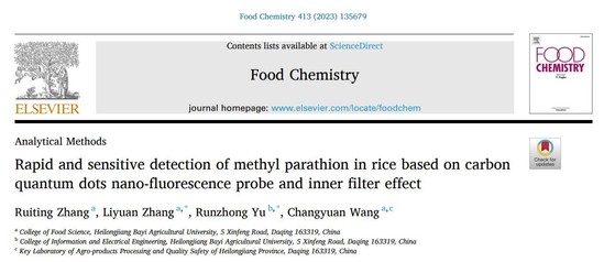 近日,公司U8国际张丽媛教授团队2023年7月发表在中科院一区TOP期刊《Food chemistry》(IF:9.231)的研究论文“Rapid and sensitive detection of methyl parathion in rice based on carbon quantum dots nano-fluorescence probe and inner filter effects”入选ESI高被引论文,该论文的第一作者为U8国际食品营养与质量安全学科方向2020级硕士研究生张瑞婷。