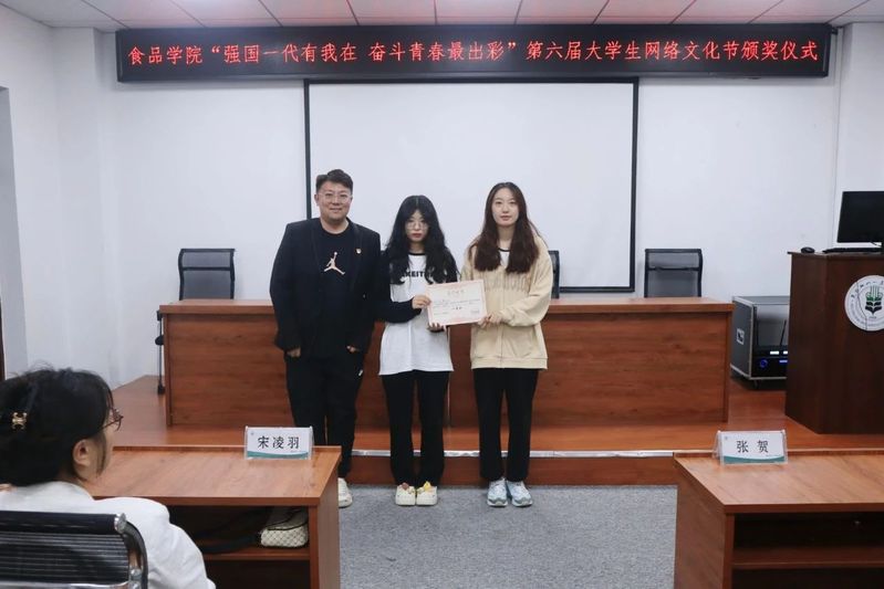 辅导员宋凌羽为二等奖获奖选手颁奖
