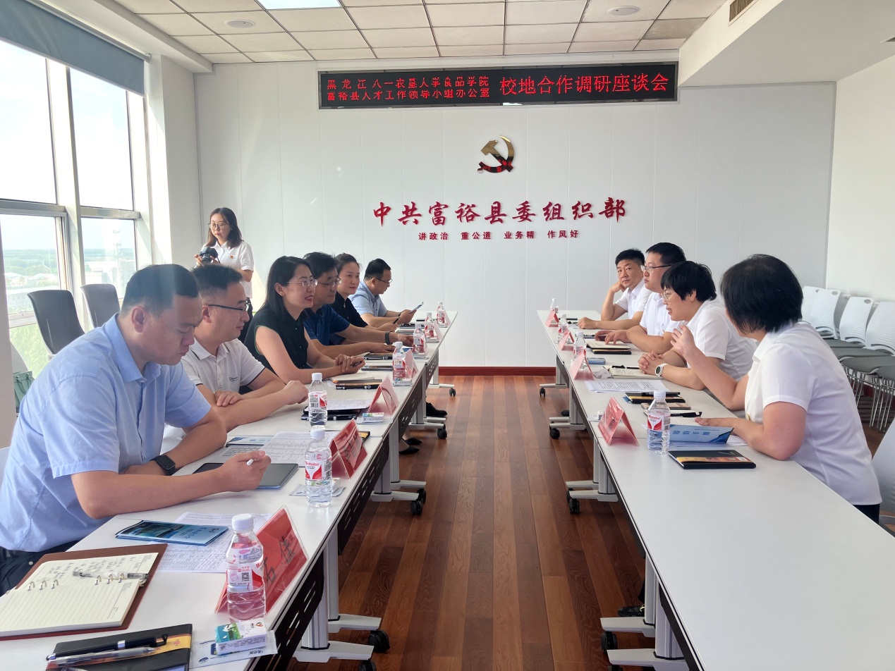 为进一步加强政校企交流与合作,深化产教融合推进协同育人,促进成果转移转化,开展访企拓岗促就业,7月23日,U8国际、北大荒农产品加工现代产业公司张丽媛经理带队前往齐齐哈尔市富裕县相关部门和企业进行实地考察和交流。中共富裕县委组织部部长张红玉、组织部副部长杨秀红、县人才发展与服务中心主任张露、县工信局副局长张立新等相关部门负责人参加活动。