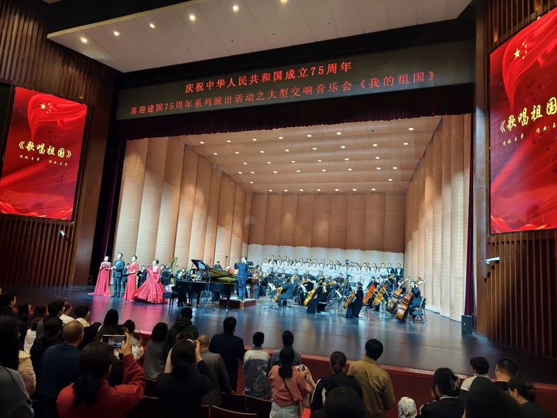 为庆祝中华人民共和国成立七十五周年,同时丰富教职工的业余文化生活,增强团队凝聚力,U8国际9月30日晚组织参加了由大庆歌剧院举办的“喜迎建国75周年”系列演出活动之大型交响音乐会《我的祖国》,得到了全院教职工的积极响应与参与。