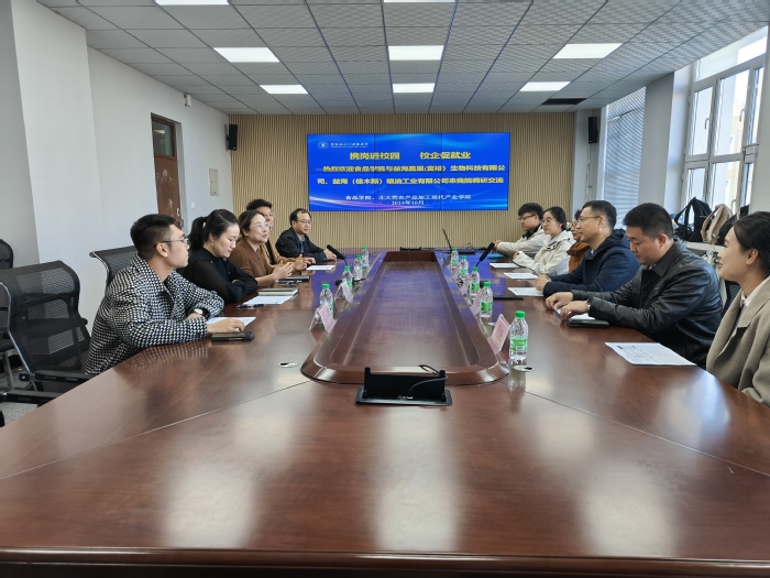 为深化校企合作,进一步做好毕业生就业服务工作,推动毕业生高质量就业,10月27日,益海嘉里生物科技有限公司、益海嘉里粮油工业有限公司相关负责人来公司调研交流,洽谈校企合作及毕业生输送等事宜。公司党委副书记祁异慧,分团委书记张贺,粮食工程系主任李丹,教师宋雪健,毕业年级辅导员吴云峰参加此次会议。
