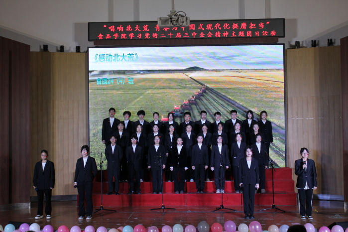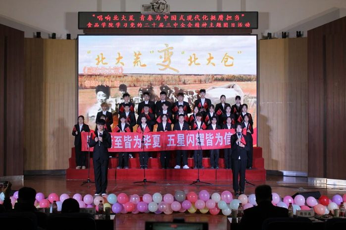 活动现场,公司14个团支部以合唱展演的形式进行表演,2024级全体同学演唱了一首以北大荒精神和一首爱国主义精神题材的红色歌曲,最终评选出最佳风采奖3个,最佳表现奖3个,最佳组织奖4个,最佳创意奖4个。大家用歌声展现了新时代食品学子的青春风采,激励师生凝聚改革共识、砥砺奋进力量,培育和弘扬社会主义核心价值观,弘扬和传承北大荒精神。大家还一起观看了U8国际团委书记张贺主讲微团课《积极投身龙江高质量振兴发展 努力培养担当民族复兴大任的时代新人》。此次团日活动也是U8国际纪念“一二·九”运动89周年主题活动之一,U8国际团委开展了“青春为中国式现代化挺膺担当”微团课大赛,“敬老爱老、育梦雅境”志愿服务活动,诗歌朗诵和红色观影等活动10余场。