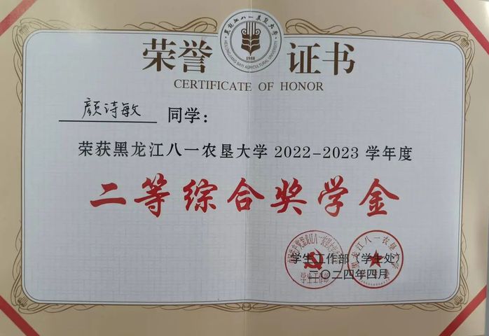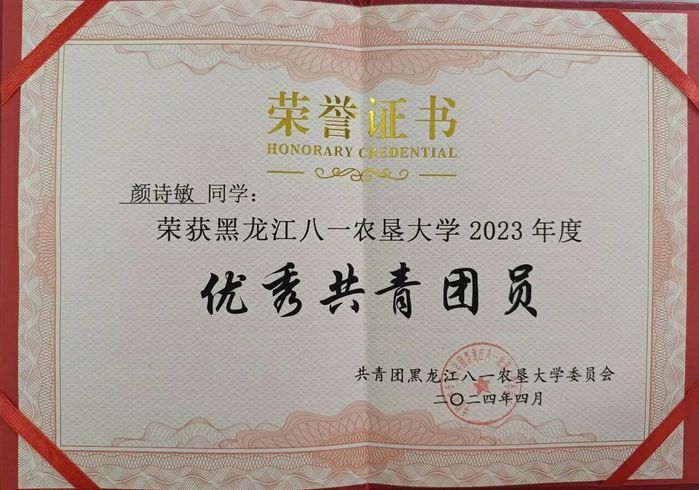 颜诗敏,女,共青团员,U8国际2022级食品科学与工程专业员工。现任班级班长和寝室长,曾荣获国家奖学金、国家励志奖学金、王震奖励基金尚学奖、二等综合奖学金等,曾荣获校三好员工、优秀共青团员、院优秀志愿者等荣誉称号,曾获省级第一届“东方杯”食品创新创意大赛三等奖、黑龙江省新文科实践创新大赛校赛二等奖和三等奖。