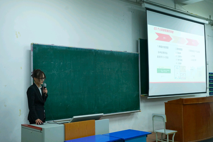 胡艺嘉同学分享了自己在大学期间参与科研竞赛的实用经验,她详细地为大家讲述了参与科研竞赛的各个要点,着重强调了专业知识以及培养科研思维的重要性,鼓励同学们要大胆构思,勇于创新。此外,她还引导同学们要以平和的心态去看待失败,要根据自己的实际情况做出最适合自己的竞赛选择,并且全力以赴地去拼搏。