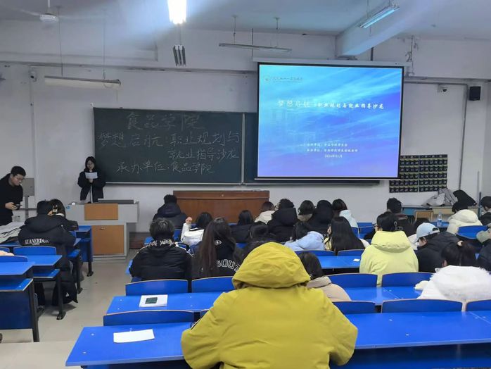 毕业年级辅导员吴云峰老师为同学们讲述了职业规划的重要性以及职业规划的意义、步骤、策略,并分享了多个成功案例。