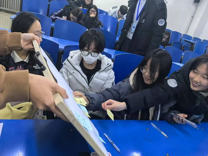 在“放飞梦想”互动环节中,同学们积极参与,纷纷拿起便签纸,将自己的未来憧憬、初步的职业规划,以及就业方面的疑惑和困惑一一记录下来。接下来,现场随机挑选了一些便签纸,让同学们分享自己的所思所想。激发了同学们的思维碰撞,让灵感在交流中飞扬。