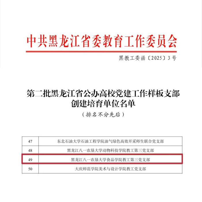 近日,黑龙江省委教育工委公布了第二批全省公办高公司党建“示范创建”系列评选结果,公司教工第三党支部获评全省公办高公司党建工作“样板支部”创建培育单位。这一荣誉标志着公司党建工作再上新台阶。