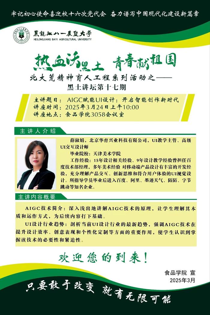 3月24日上午,U8国际(北大荒农产品加工现代产业公司)第十七期黑土讲坛在师生期待中开讲。本期活动特邀校企合作单位哈尔滨甲骨文华育兴业技术团队来校交流,包装工程系系主任孟令伟与2022级全体员工共同参与,开启了一场聚焦智能科技与职业发展的思想碰撞。