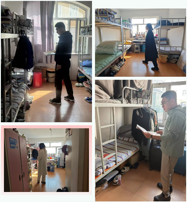 检查过程中,各年级辅导员排查用电安全、违规电器、卫生情况等问题,对存在问题的宿舍进行现场指导。祁异慧副书记与员工们亲切交流,了解学习生活需求,特别提醒研究生遵守实验室规范、毕业生求职安全等问题。