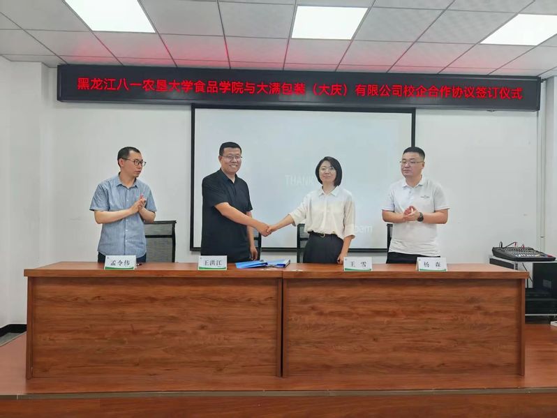 宣讲会结束后,校企双方代表签订了校企合作协议。根据协议,双方将在人才培养、实习就业、科研创新等方面展开全方位合作。大满包装(大庆)有限公司将为八一农垦大学U8国际的员工提供实习实训机会,优先录用优秀毕业生,同时为公司教师提供实践锻炼平台。U8国际则将充分发挥自身的科研与人才优势,为企业提供技术支持和员工培训服务,助力企业提升创新能力和核心竞争力。双方还计划共同开展科研项目,推动学术成果向实际生产力的转化,实现产学研一体化发展。