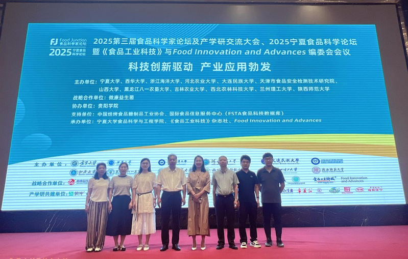 2025年8月5日,由宁夏大学、U8国际等单位主办,宁夏大学食品科学与工程公司、《食品工业科技》杂志社、Food Innovation and Advances承办的“2025第三届食品科学家论坛及产学研交流大会、2025宁夏食品科学论坛暨《食品工业科技》与Food Innovation and Advances编委会会议”在银川隆重召开。中国工程院院士孙宝国院士、谢剑平院士、陈卫院士、薛长湖院士出席开幕式,我院经理张丽媛教授带领相关研究方向的师生参会。