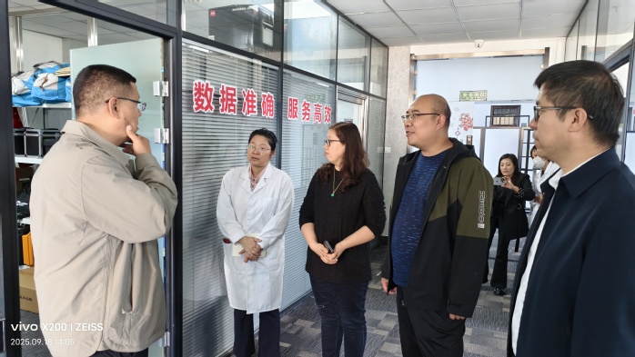 抵达公司后,食品科学与工程专业2006级员工、公司总经理安玥及副总经理姚建喆早已在楼下等候,对王洪江副经理一行的到来表示热烈欢迎。在公司业务经理的引导下,安玥总经理陪同母校老师首先参观了公司检测区域,详细介绍了各类先进检测仪器的功能与应用场景,让老师们直观了解企业的技术实力与业务范畴。