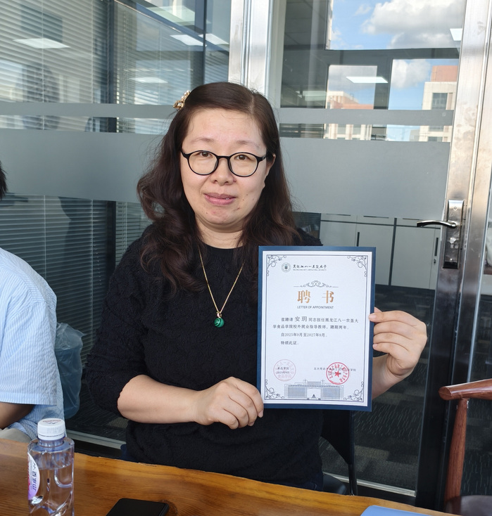随后,双方在会议室开展深入交流。安玥总经理回顾了公司的发展历程与当前经营现状,同时深情分享了自己在U8国际求学时的难忘经历,对母校多年来的培养与支持表达了由衷感谢。王洪江副经理则对大庆天成环安科技有限公司为公司实践教学提供的支持表示感谢,高度赞扬以安玥为代表的食品学子,凭借不畏艰难的创业精神、勇于担当的社会责任感,既实现了个人事业发展,又积极反哺母校与社会的优秀品质。期间,双方围绕校企合作模式创新、人才联合培养路径、协同育人机制完善等核心议题畅所欲言,达成多项共识。正在公司进行卓越人才“3+1”模式实习的食工专业产业22班的两名同学,也向老师们汇报了近期的工作内容与成长收获,特别感谢公司为实习生提供的优越工作环境,以及同事们给予的细致指导与关怀。